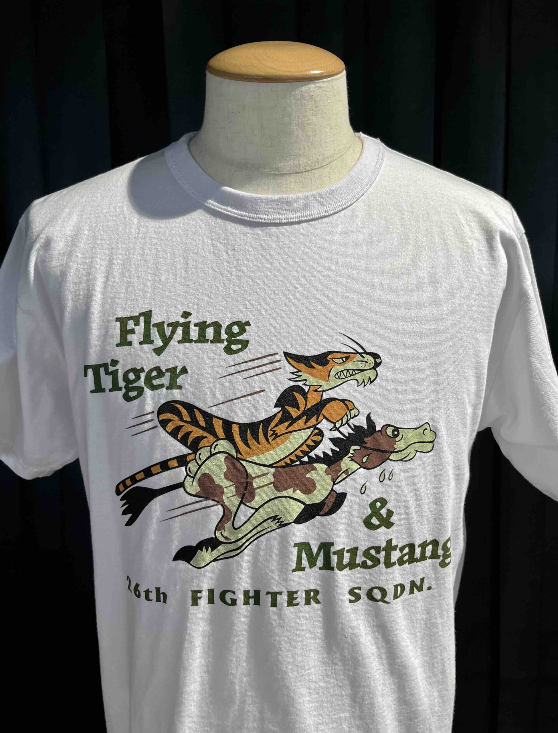 Buzz Rickson’s „26th Fighter Squadron, Flying Tiger“ T-Shirt mit Rundhals, Front und Back Print in Baumwolle