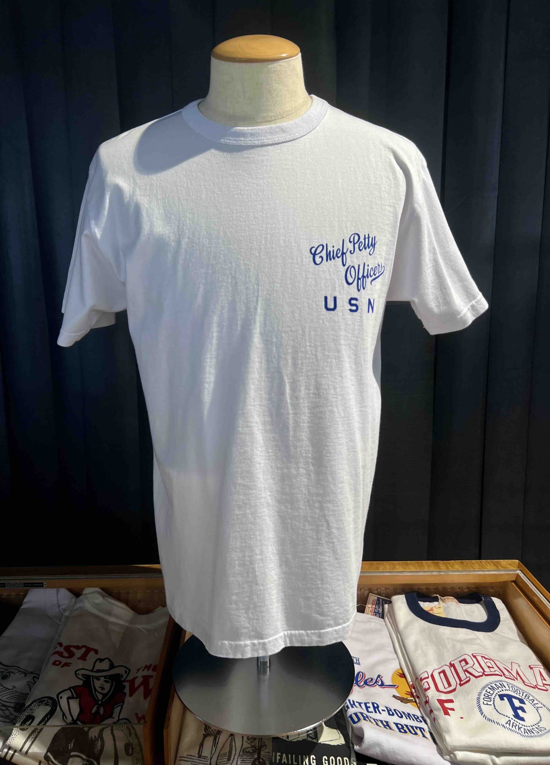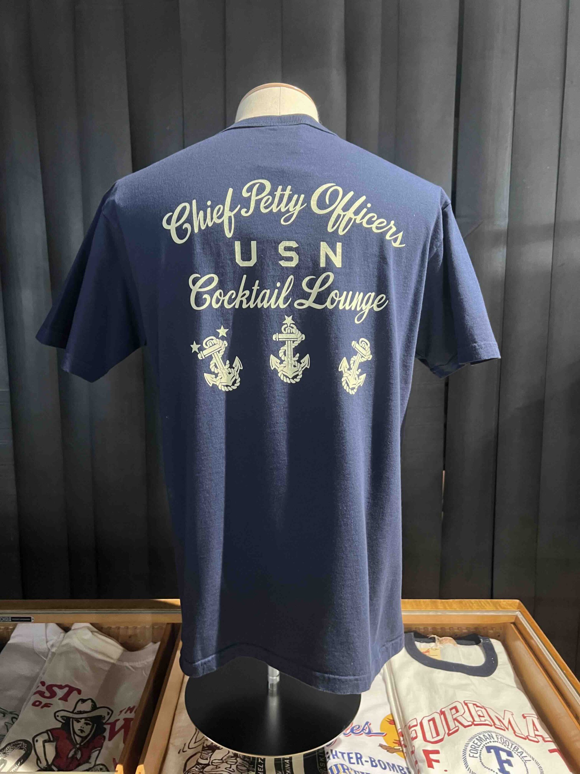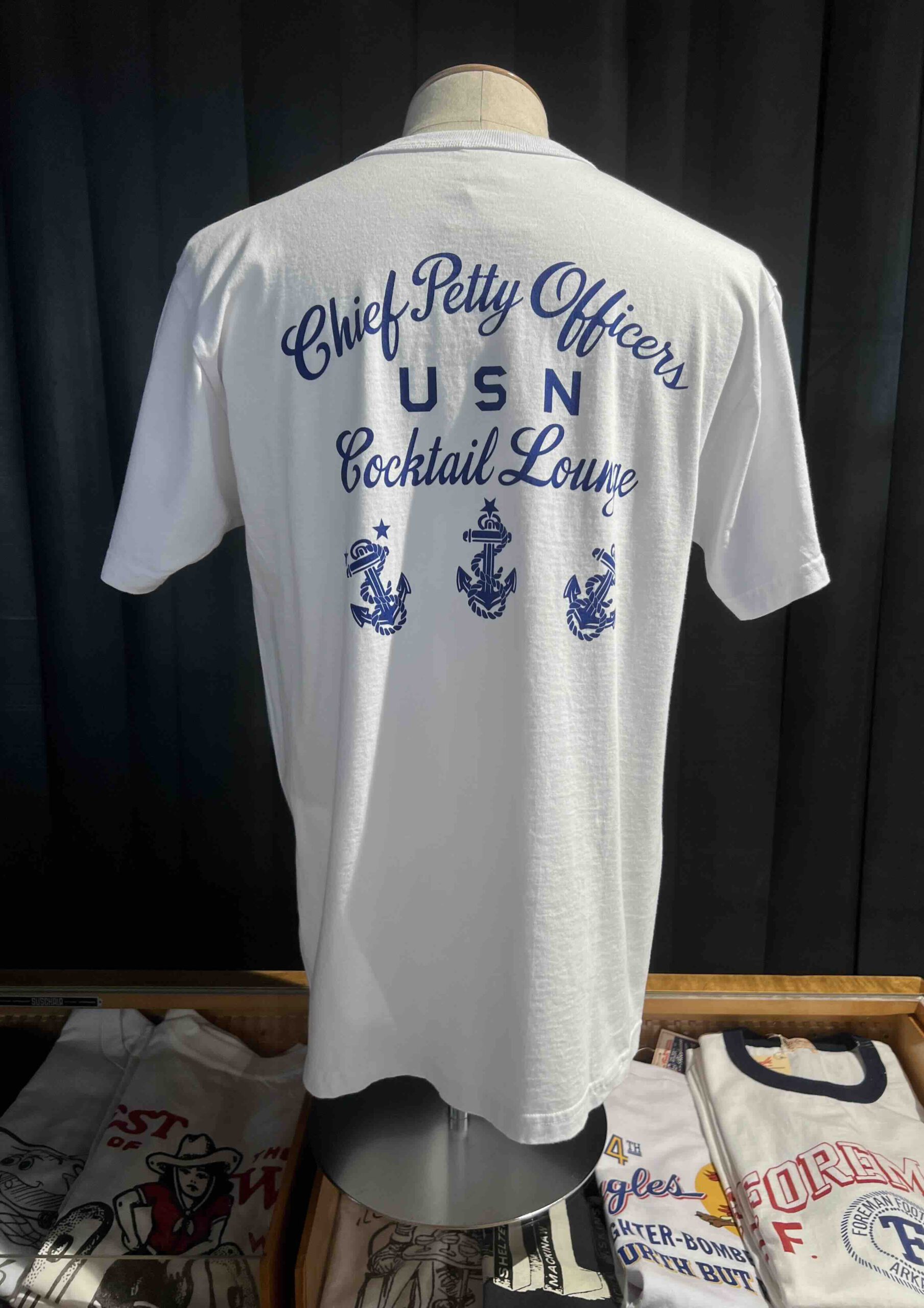 Buzz Rickson’s „U.S.N. Cocktail Lounge“ T-Shirt mit Rundhals, Front und Back Print